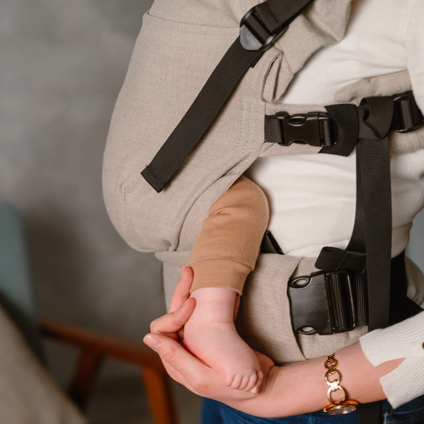 - Spezielle Schnalle, um die ergonomische Position der Kleinsten zu unterstützen
