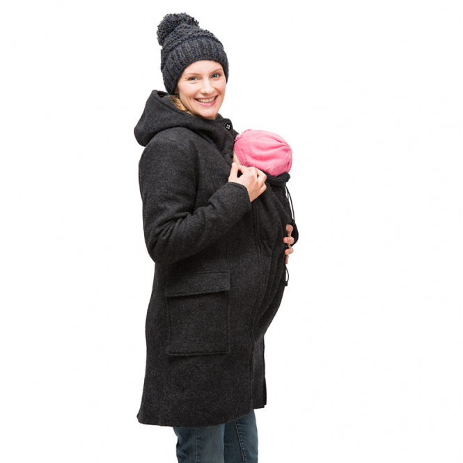 Für die Schwangerschaft genauso geeignet wie über Ihr getragenes Baby ist der neue Kapuzenmantel ein toller Begleiter durch die kalten Tage. Kuschelig weich aus Wollwalk, sportlich und dennoch feminin, werden Sie ihn auch ohne Baby und Babybauch lieben!